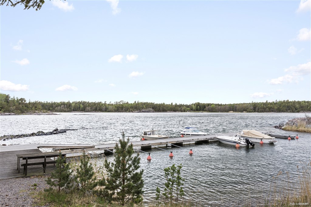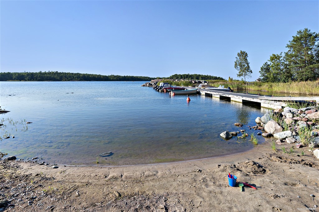 Den stora tomten bjuder på vacker inramning och härligt vacker skärgårdsmiljö med glesa tallar, blåbär och lingon samt släta berg i dagen. Från tomten når man enkelt ner till den lilla sjön ca 400m från huset och den fina båthamnen, klipporna och sandstranden ca 1 km bort.